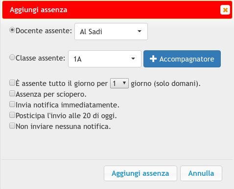 Aggiunta e modifica di assenze