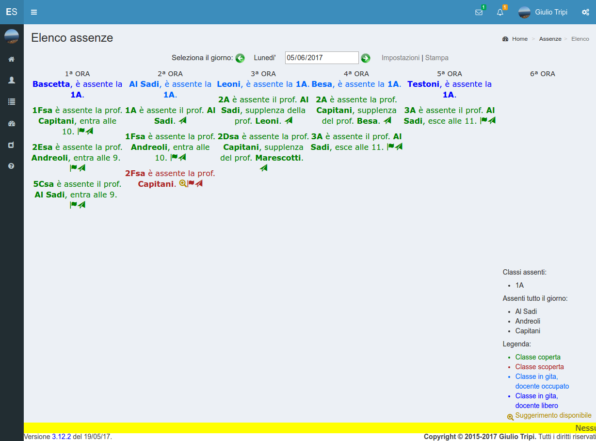 Assegna.È anche possibile inserire le classi in gita in modo tale da visualizzare tra i docenti disponibili anche quelli in gita.